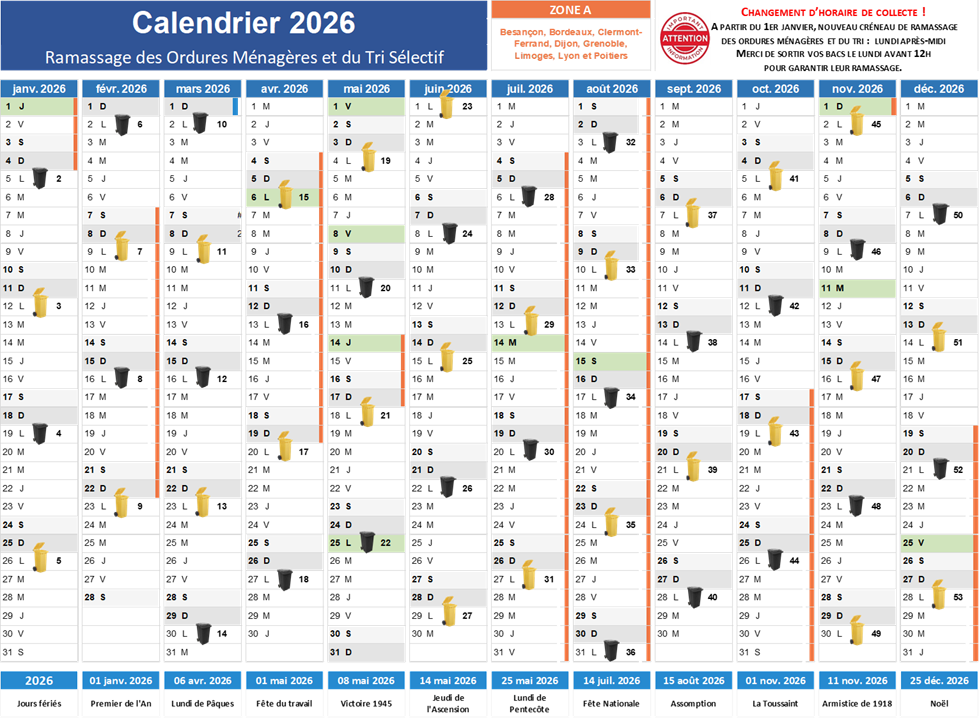 La 1e modification de collecte aura lieu pour le bac gris le 5 janvier 2026.