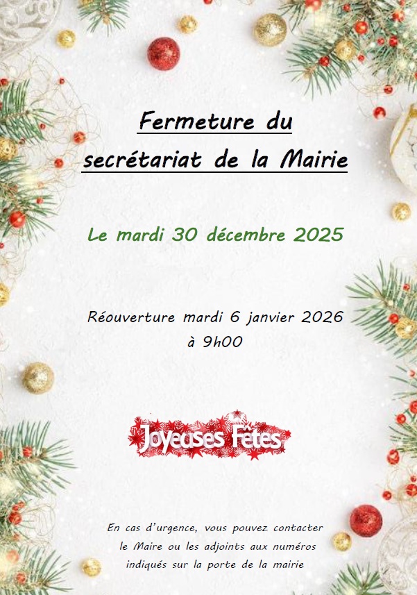 Vous pouvez la récupérer au secrétariat de la Mairie pendant les horaires d’ouverture.