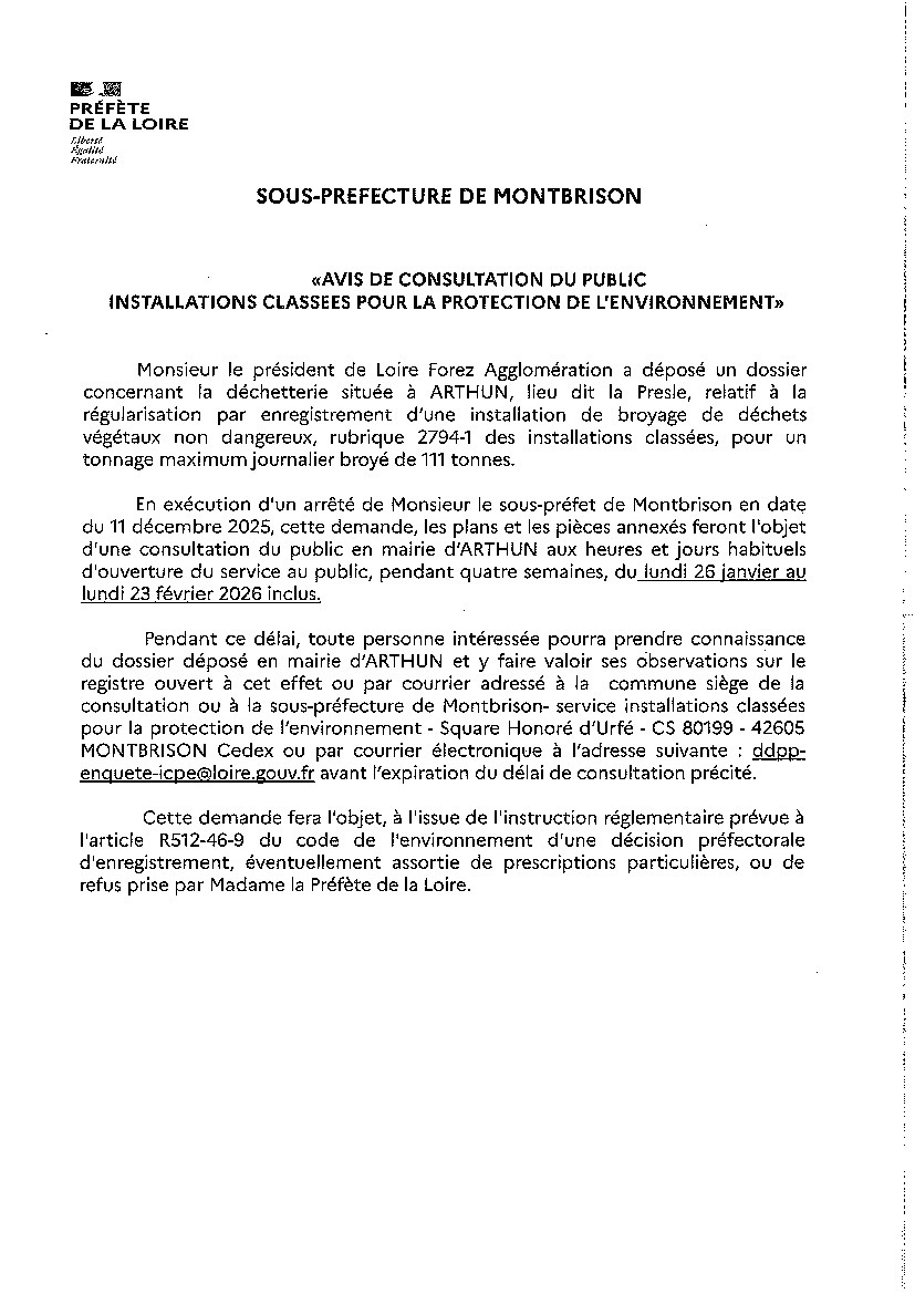 En exécution de la délibération du conseil communautaire en date du 13 décembre 2022, un registre de concertation du public est mis à disposition du public en Mairie, aux heures et aux jours d’ouverture du secrétariat.